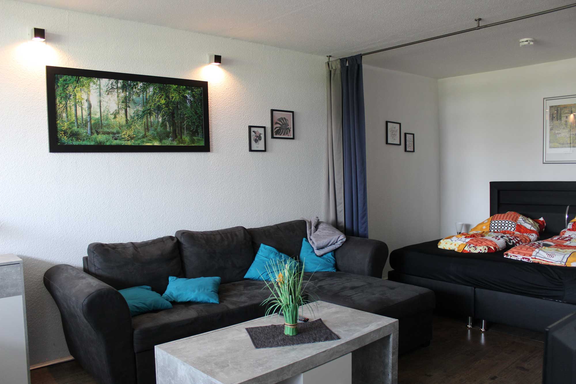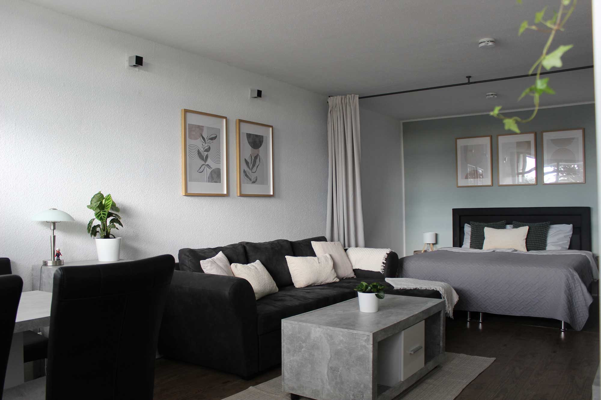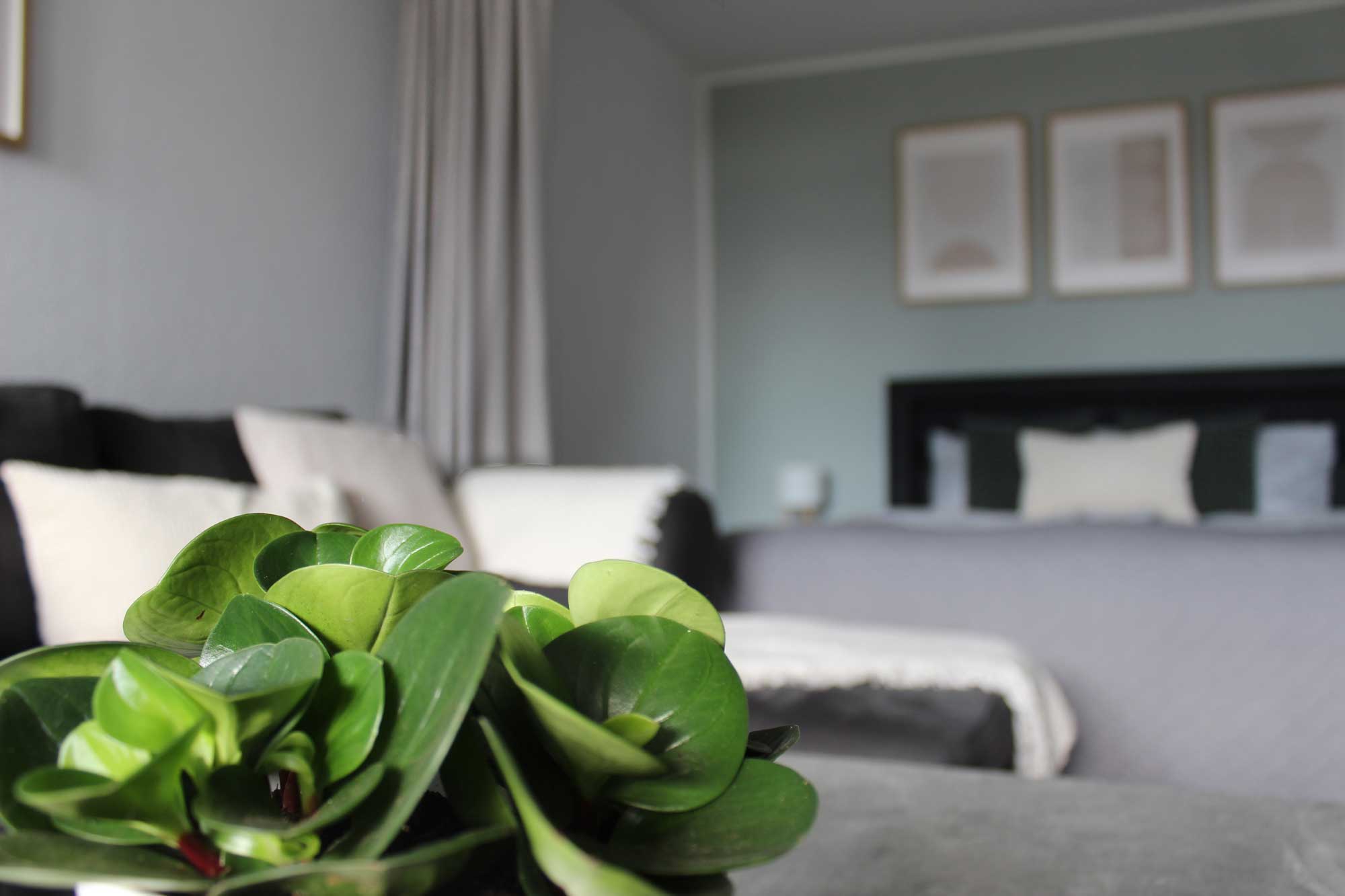 Die bestehende Möblierung und Raumaufteilung blieben im Wesentlichen erhalten, wurden jedoch durch gezielte gestalterische Eingriffe neu interpretiert. Farbige Akzente, abgestimmte Textilien und einzelne neue Elemente verleihen den Räumen eine frische, freundliche Ausstrahlung. Pflanzen und bewusst gesetzte Dekoration schaffen Lebendigkeit und ein Gefühl von Zuhause.